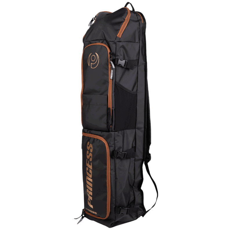 La funda Princess Premium es la mas grande de nuestra colección. Tiene un espacio para 4-5 palos y varios bolsillos grandes y chicos para guardar todo tipo de producto que quieras llevar a entrenar o jugar. Además posee dos hombrearas para llevarla como mochila y también una manija de mano como para cargarla tipo “valija”. A sus costados tiene bolsillos de red para guardar ropa húmeda. Esta fabricada con tela impermeable para proteger los productos que lleves dentro.
