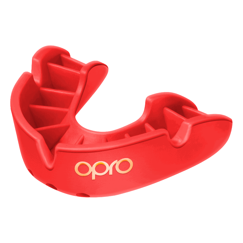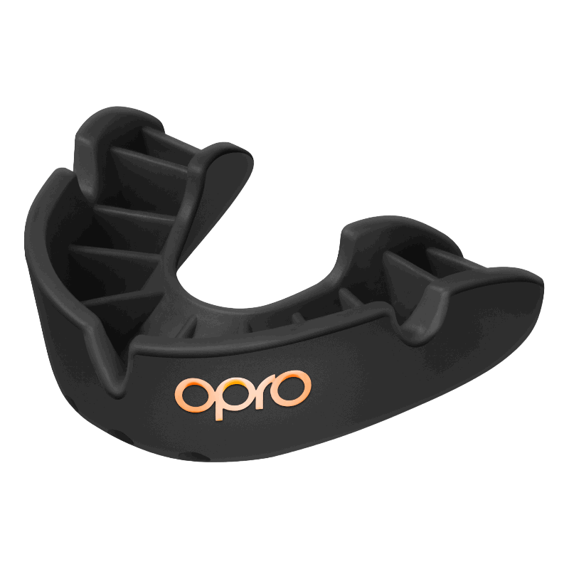 El protector bucal OPRO BRONZE tiene 11 aletas colocadas anatómicamente para proporcionar un ajuste seguro y cómodo. Durante el proceso de ajuste, las aletas se suavizan y abrazan los contornos de sus dientes y encías. Esto deja al usuario con un ajuste como ningún otro, comodidad como ningún otro y niveles de protección que solo puede obtener con un protector bucal OPRO.